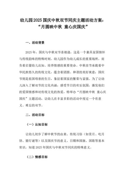 【七哥公文】2025年:幼儿园2025国庆中秋双节同庆主题活动方案:“月圆映中秋 童心庆国庆”+更多免费公文+VX:QiGeGongWen2024