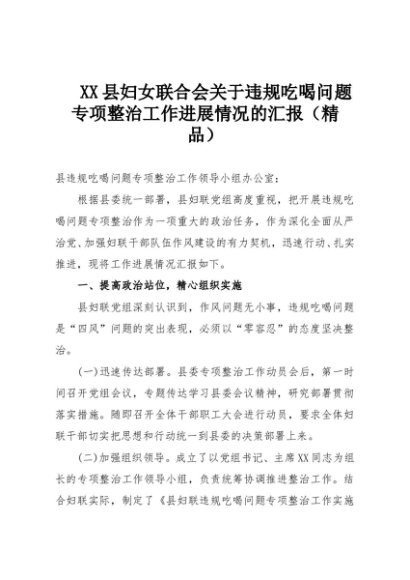 【七哥公文】2025年:XX县妇女联合会关于违规吃喝问题专项整治工作进展情况的汇报(精品)+更多免费公文+VX:QiGeGongWen2024