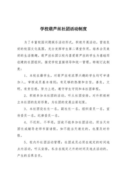【七哥公文】2025年:学校葫芦丝社团活动制度+更多免费公文+VX:QiGeGongWen2024