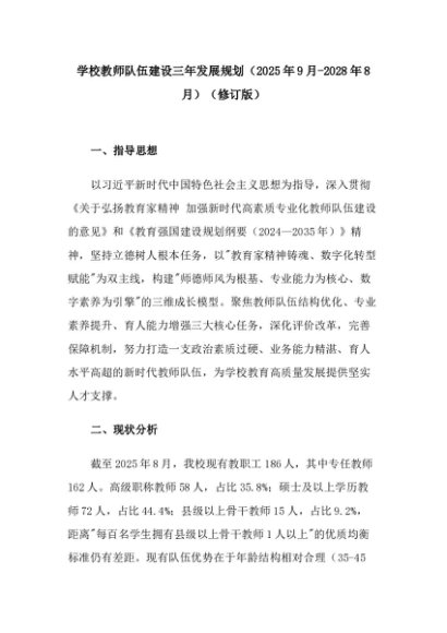 【七哥公文】2025年:学校教师队伍建设三年发展规划(2025年9月-2028年8月)(修订版)+更多免费公文+VX:QiGeGongWen2024