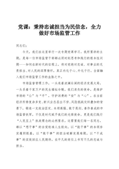 / 【七哥公文】2025年:党课:秉持忠诚担当为民信念,全力做好市场监管工作+更多免费公文+VX:QiGeGongWen2024