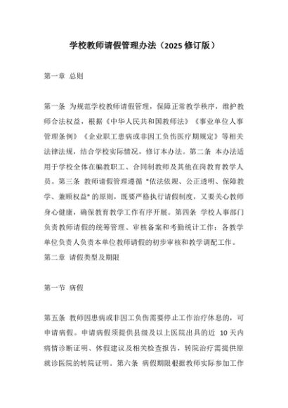 【七哥公文】2025年:学校教师请假管理办法(2025 修订版)+更多免费公文+VX:QiGeGongWen2024
