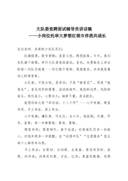 【七哥公文】2025年:大队委竞聘面试辅导员讲话稿-小岗位托举大梦想红领巾伴我共成长+更多免费公文+VX:QiGeGongWen2024