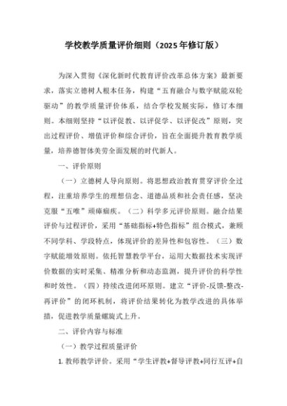 【七哥公文】2025年:学校教学质量评价细则(2025年修订版)+更多免费公文+VX:QiGeGongWen2024