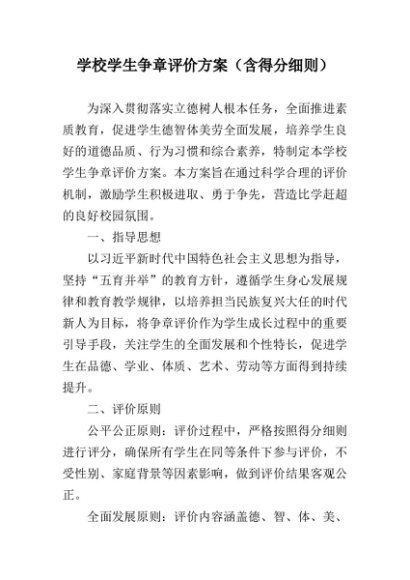【七哥公文】2025年:学校学生争章评价方案(含得分细则)+更多免费公文+VX:QiGeGongWen2024