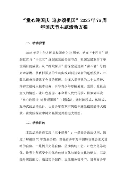 【七哥公文】2025年:“童心迎国庆 追梦颂祖国”2025年76周年国庆节主题活动方案+更多免费公文+VX:QiGeGongWen2024