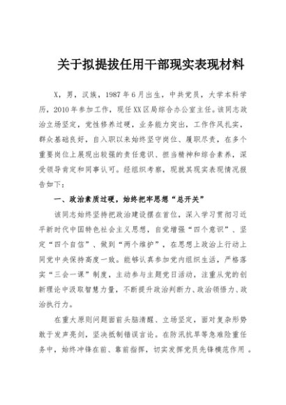 【七哥公文】2025年:关于拟提拔任用干部现实表现材料+更多免费公文+VX:QiGeGongWen2024