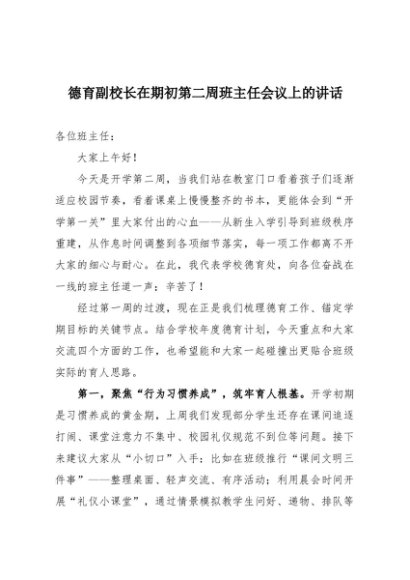 / 【七哥公文】2025年:德育副校长在期初第二周班主任会议上的讲话+更多免费公文+VX:QiGeGongWen2024