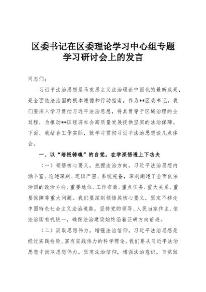 / 【七哥公文】2025年:区委书记在区委理论学习中心组专题学习研讨会上的发言+更多免费公文+VX:QiGeGongWen2024