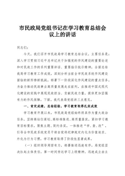 / 【七哥公文】2025年:市民政局党组书记在学习教育总结会议上的讲话+更多免费公文+VX:QiGeGongWen2024
