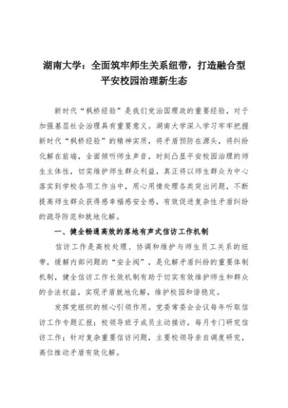 【七哥公文】2025年:湖南大学:全面筑牢师生关系纽带,打造融合型平安校园治理新生态+更多免费公文+VX:QiGeGongWen2024