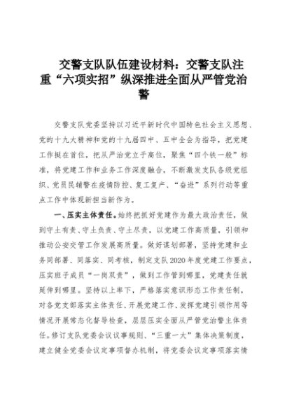 【七哥公文】2025年:交警支队队伍建设材料:交警支队注重“六项实招”纵深推进全面从严管党治警+更多免费公文+VX:QiGeGongWen2024