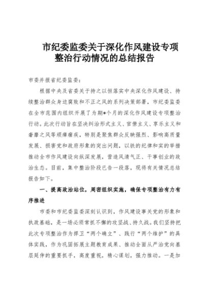 / 【七哥公文】2025年:市纪委监委关于深化作风建设专项整治行动情况的总结报告+更多免费公文+VX:QiGeGongWen2024