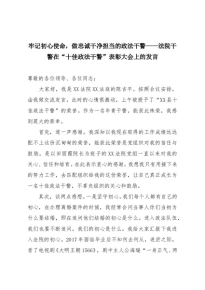 【七哥公文】2025年:牢记初心使命,做忠诚干净担当的政法干警——法院干警在“十佳政法干警”表彰大会上的发言+更多免费公文+VX:QiGeGongWen2024