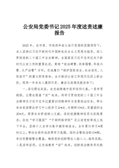 / 【七哥公文】2025年:公安局党委书记2025年度述责述廉报告+更多免费公文+VX:QiGeGongWen2024
