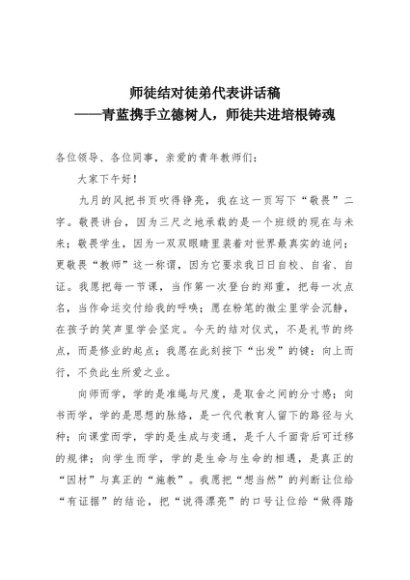 【七哥公文】2025年:师徒结对徒弟代表讲话稿-青蓝携手立德树人,师徒共进培根铸魂+更多免费公文+VX:QiGeGongWen2024