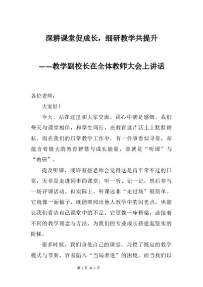 【七哥公文】2025年:教学副校长在全体教师大会上讲话:深耕课堂促成长,细研教学共提升+更多免费公文+VX:QiGeGongWen2024