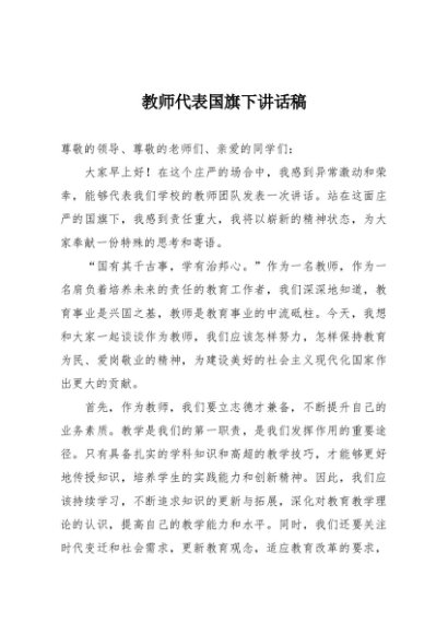 【七哥公文】2025年:教师代表国旗下讲话稿+更多免费公文+VX:QiGeGongWen2024