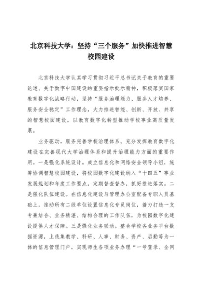 【七哥公文】2025年:北京科技大学:坚持“三个服务”加快推进智慧校园建设+更多免费公文+VX:QiGeGongWen2024