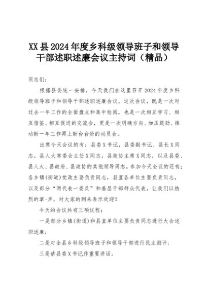 【七哥公文】2025年:XX县2024年度乡科级领导班子和领导干部述职述廉会议主持词(精品)+更多免费公文+VX:QiGeGongWen2024