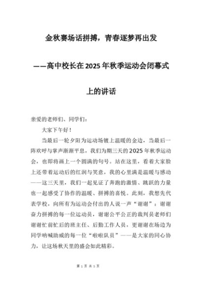 【七哥公文】2025年:高中校长在2025年秋季运动会闭幕式上的讲话:金秋赛场话拼搏,青春逐梦再出发+更多免费公文+VX:QiGeGongWen2024