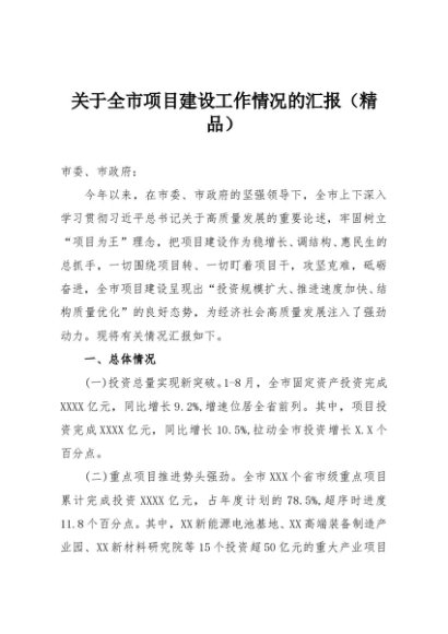 / 【七哥公文】2025年:关于全市项目建设工作情况的汇报(精品)+更多免费公文+VX:QiGeGongWen2024
