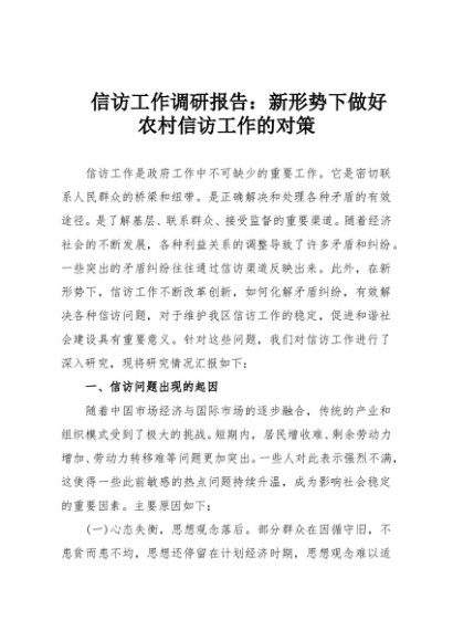 / 【七哥公文】2025年:信访工作调研报告:新形势下做好农村信访工作的对策+更多免费公文+VX:QiGeGongWen2024