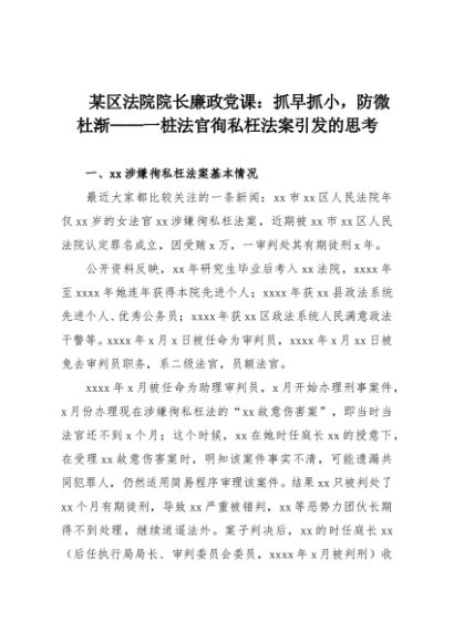 【七哥公文】2025年:某区法院院长廉政党课:抓早抓小,防微杜渐——一桩法官徇私枉法案引发的思考+更多免费公文+VX:QiGeGongWen2024
