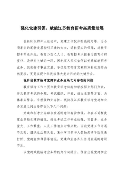 / 【七哥公文】2025年:强化党建引领,赋能江苏教育招考高质量发展+更多免费公文+VX:QiGeGongWen2024
