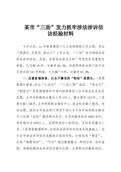 / 【七哥公文】2025年:某市“三劲”发力抓牢涉法涉诉信访经验材料+更多免费公文+VX:QiGeGongWen2024