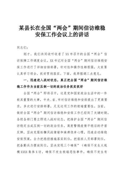 【七哥公文】2025年:某县长在全国“两会”期间信访维稳安保工作会议上的讲话+更多免费公文+VX:QiGeGongWen2024