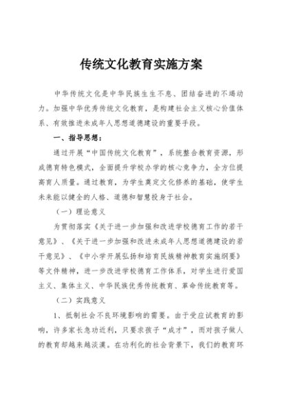 【七哥公文】2025年:传统文化教育实施方案+更多免费公文+VX:QiGeGongWen2024