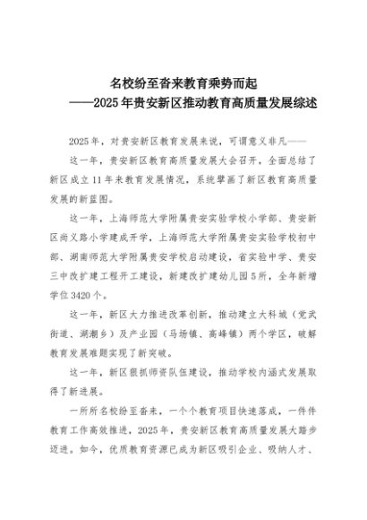 【七哥公文】2025年:名校纷至沓来教育乘势而起-2025年贵安新区推动教育高质量发展综述+更多免费公文+VX:QiGeGongWen2024