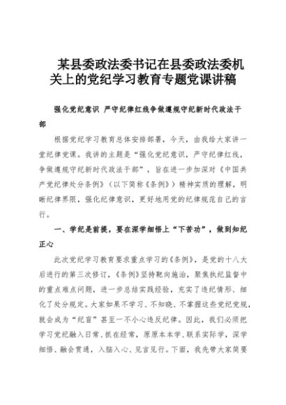 【七哥公文】2025年:某县委政法委书记在县委政法委机关上的党纪学习教育专题党课讲稿+更多免费公文+VX:QiGeGongWen2024