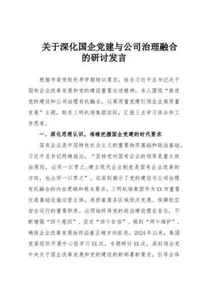 / 【七哥公文】2025年:关于深化国企党建与公司治理融合的研讨发言+更多免费公文+VX:QiGeGongWen2024