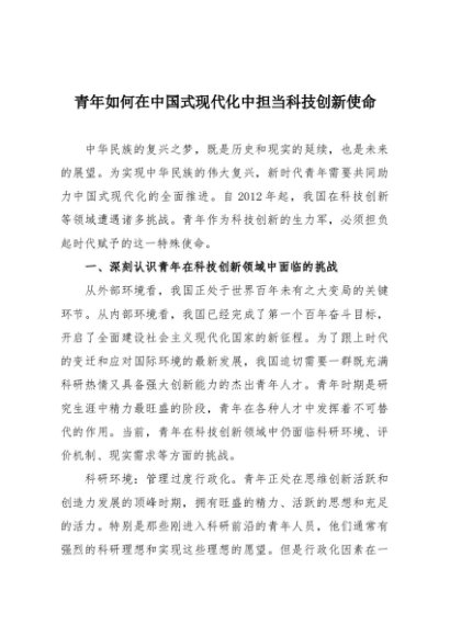 / 【七哥公文】2025年:青年如何在中国式现代化中担当科技创新使命+更多免费公文+VX:QiGeGongWen2024