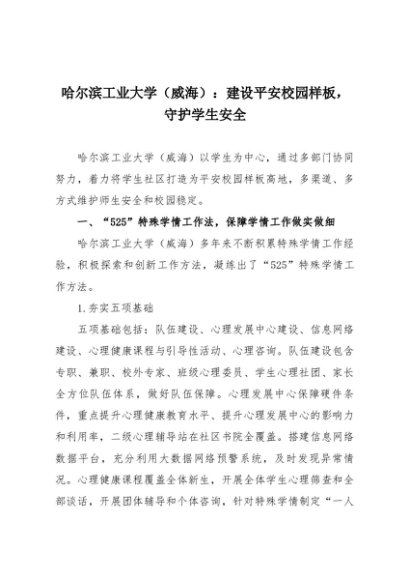 【七哥公文】2025年:哈尔滨工业大学(威海):建设平安校园样板,守护学生安全+更多免费公文+VX:QiGeGongWen2024