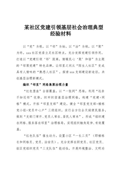 / 【七哥公文】2025年:某社区党建引领基层社会治理典型经验材料+更多免费公文+VX:QiGeGongWen2024