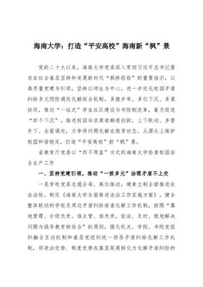 / 【七哥公文】2025年:海南大学:打造“平安高校”海南新“枫”景+更多免费公文+VX:QiGeGongWen2024