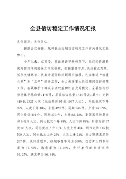 【七哥公文】2025年:全县信访稳定工作情况汇报+更多免费公文+VX:QiGeGongWen2024