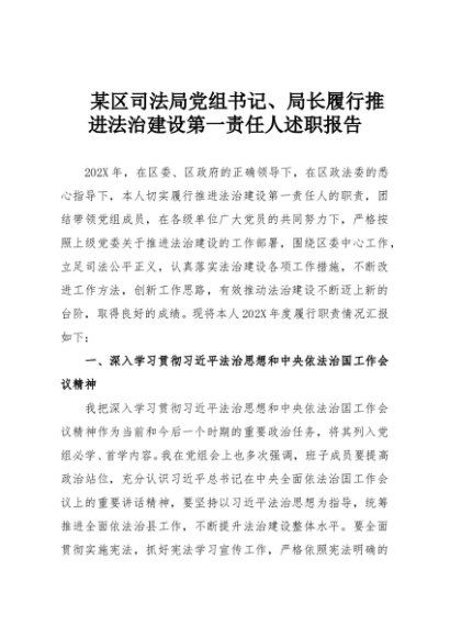【七哥公文】2025年:某区司法局党组书记、局长履行推进法治建设第一责任人述职报告+更多免费公文+VX:QiGeGongWen2024