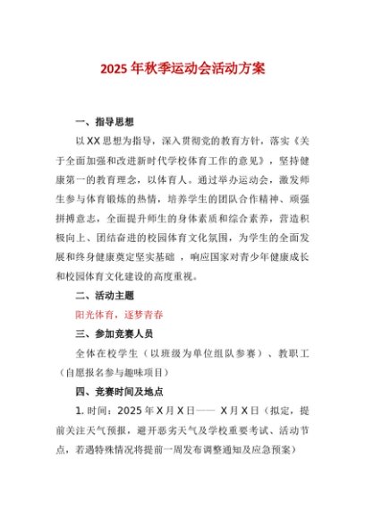 / 【七哥公文】2025年:2025年秋季运动会活动方案+更多免费公文+VX:QiGeGongWen2024