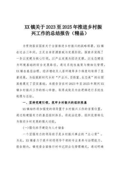 【七哥公文】2025年:XX镇关于2023至2025年推进乡村振兴工作的总结报告(精品)+更多免费公文+VX:QiGeGongWen2024