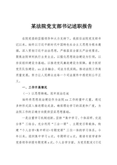 / 【七哥公文】2025年:某法院党支部书记述职报告+更多免费公文+VX:QiGeGongWen2024