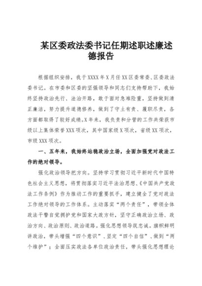 / 【七哥公文】2025年:某区委政法委书记任期述职述廉述德报告+更多免费公文+VX:QiGeGongWen2024