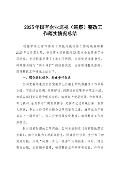 / 【七哥公文】2025年:2025年国有企业巡视(巡察)整改工作落实情况总结+更多免费公文+VX:QiGeGongWen2024