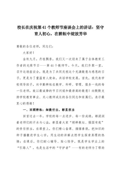 【七哥公文】2025年:校长在庆祝第41个教师节座谈会上的讲话:坚守育人初心,在耕耘中绽放芳华+更多免费公文+VX:QiGeGongWen2024