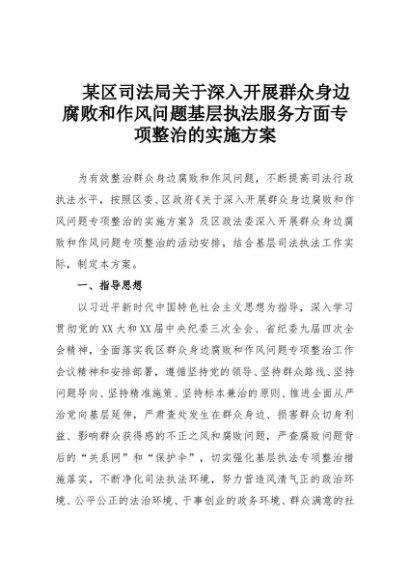 【七哥公文】2025年:某区司法局关于深入开展群众身边腐败和作风问题基层执法服务方面专项整治的实施方案+更多免费公文+VX:QiGeGongWen2024