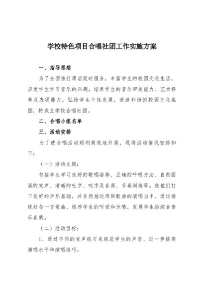 【七哥公文】2025年:特色项目合唱社团工作实施方案+更多免费公文+VX:QiGeGongWen2024
