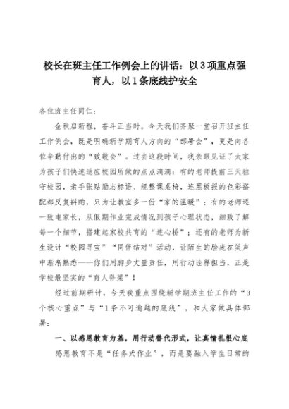 【七哥公文】2025年:校长在班主任工作例会上的讲话:以3项重点强育人,以1条底线护安全+更多免费公文+VX:QiGeGongWen2024